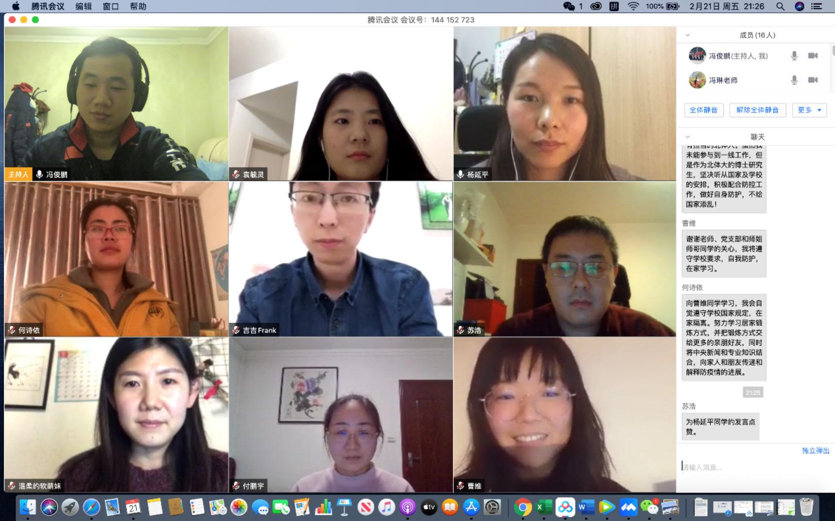 2月21日21:00,支部全体党员和两名入党积极分子共16人通过“腾讯会议”进行了线上学习与讨论。