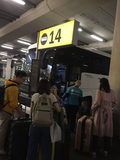 经过十个半小时的飞行,走下飞机,我们一行人已觉疲惫。取完行李,走出接机口时,立即看到了举着伍斯特大学牌子,穿着亮蓝色T恤的Linda老师。飞机晚点1小时,而她已在这里等候了两个小时。见面后,她亲切的问候我们,并带领我们走向一层的接送站。傍晚的伦敦凉风阵阵,我们推着大大小小的行李箱走向站台,心中却充满了期待。