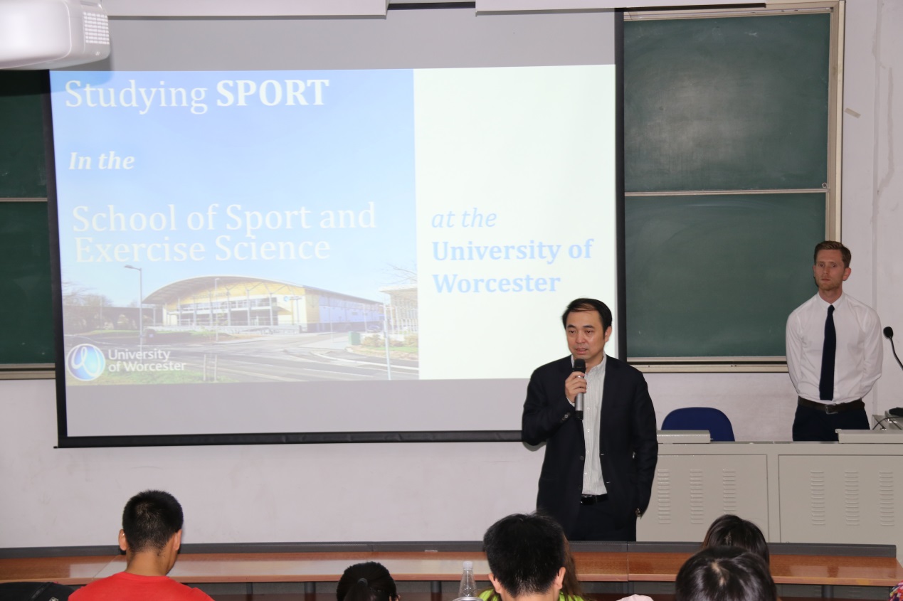 2019年5月28日上午10点,由英国伍斯特大学(University of Worcestor)与我院共同举办的学术讲座——Studying Sport In the School,在教学楼215教室顺利举行,主讲人为伍斯特大学Ben Duncan博士。taptap点点足彩院长王荣辉,运动生物力学教研室教师邓辰,运动生理学教研室教师赵磊出席了本次活动。本次活动亦是我院举办的一场学术活动。我院部分2018级博士和硕士研究生参加了本次讲座。