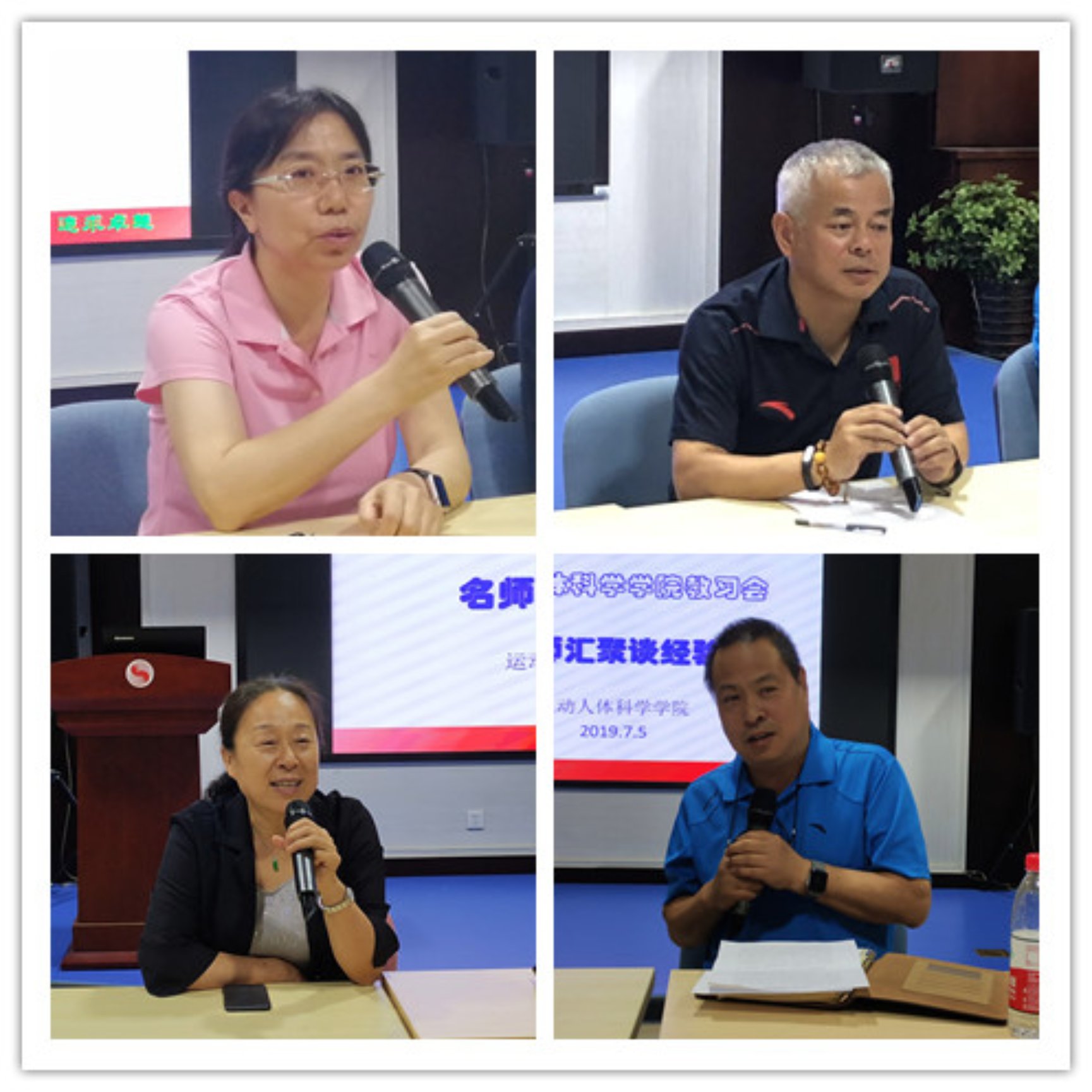 第一部分是教学经验的交流分享。运动解剖学教研室罗冬梅教师、徐刚教授、运动生物化学教研室曹建民教授、运动生物力学教研室曲峰教授四位经验丰富的教学名师,分享他们的教学经验和感悟。罗冬梅教授表示,根据30年从教的经验,老师应该做好的三个点:知识的传授、文化的传承和学生心灵的塑造。她提出“做有温度的老师”,首先将自己的专业做好、让学生容易理解,同时将优良传统传承下去,关爱学生,让学生在社会工作中受益。曹建民教授表示,将学生当成自己的孩子,潜心于教学,不忘初心,根据不同专业和对象进行深刻的交流,有利于提高教学水平。曲峰教授提出,了解不同学生的主要专项和动作形式;爱学生,向家长一样和学生交流。徐刚教师表示,教学规范严格要求、教研室严格管理、教案和板书的设计是提高教学质量的重要手段。期间老师们展开了激烈的讨论,擦出了不同的火花。