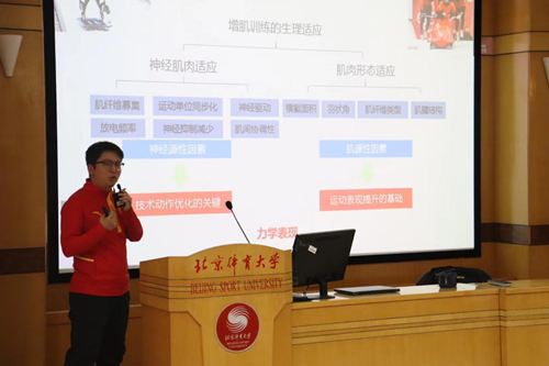魏宏文教授以“从运人来,到运人去 ——我在足球队的工作汇报”为题,向大家介绍了中国女足备战FIFA世界杯时的体能储备目标和体能训练手段;讲解了与中国男足的力量训练设计有关的下肢训练方法以及运动损伤防控方法;并分享了自己从事体能训练的心得体会。