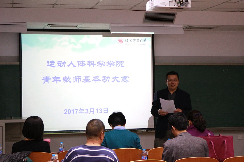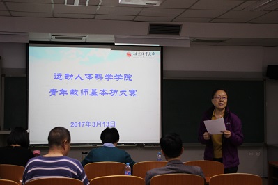 比赛由毛志雄副院长主持,分别来自运动生物化学、运动生物力学、运动生理学、体育统计与测量、运动解剖学及运动心理学教研室的郭娴、李翰君、吴迎、张留伟、刘永和王莉六位教师参加了比赛,评委组由曲峰、徐刚、石丽君、邱俊强、李红娟、张国礼六位教师组成。教学处陈岭副处长到场指导。