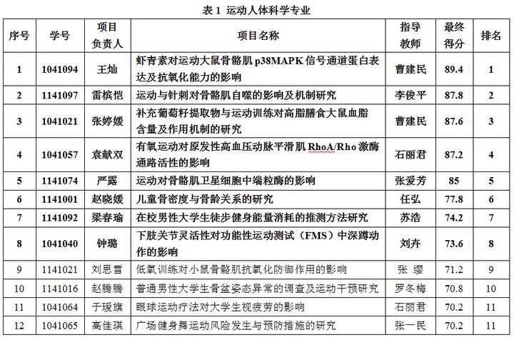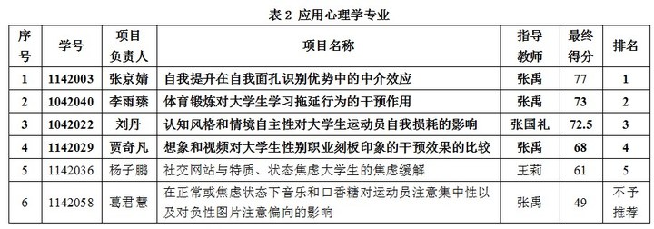 按照学校的名额分配,运动人体科学专业前8名,应用心理学专业前4名,正常情况下可以获得资助并立项。其他推荐的申报项目,将由学校统筹决定是否资助。