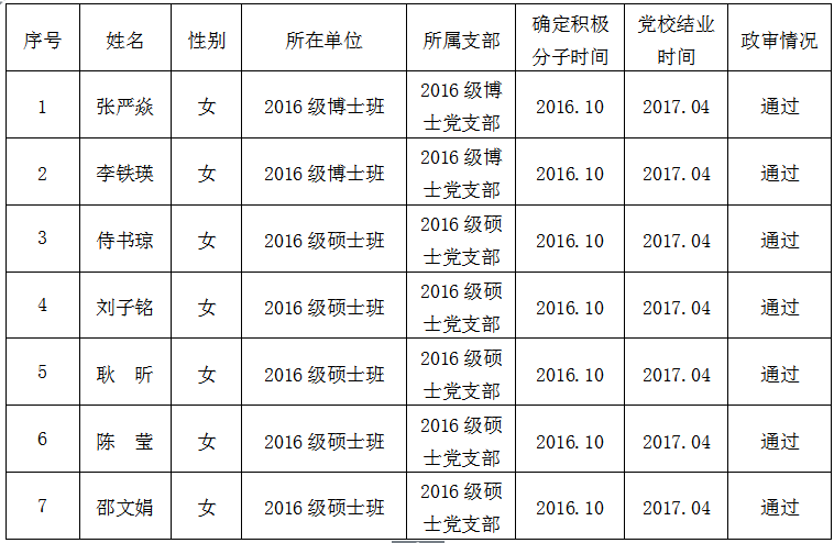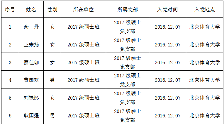 经2017年12月6日taptap点点足彩分党委委员会讨论,拟批准以下6名预备党员按期转正,7名入党积极分子近期发展。为进一步增强党员发展工作的透明度,加强民主监督,确保党员发展质量,现公示如下。