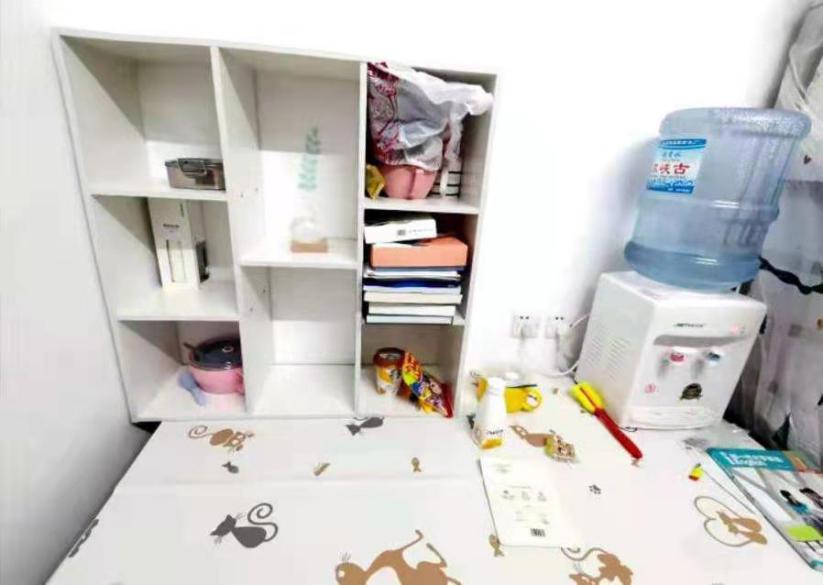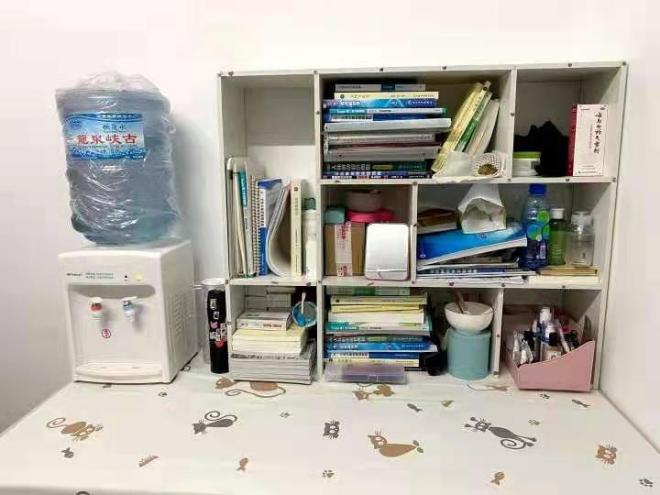 宿舍简介:这是一个爱学习的宿舍,追求简单、简约、干净、整齐。由于书太多、个人空间小,书籍课本无法安置妥当,摆放的比较杂乱,宿舍看起来十分凌乱,于是购买了书架,用来放置书本和个人物品。还给桌子铺了桌布,寝室颜值马上提升,宿舍一下整洁了不少。洗手间的空间小,物品摆放太紧凑,于是我们购买了洗手间置物架,卫生间也变得干净整齐了!