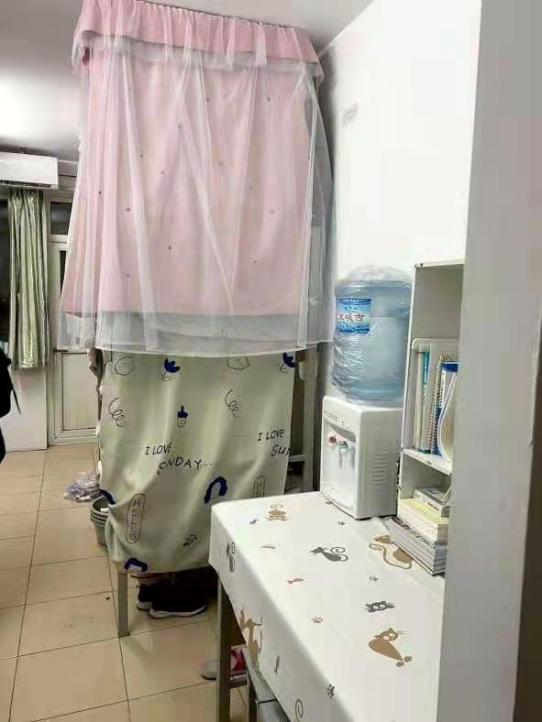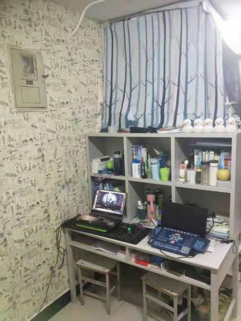宿舍简介:动与静的结合。就照片中所显,我们能清晰的看见在装修前后,寝室中个人的生活空间似乎是稍微变小了一点,但上铺同学的遮光问题得到了很好的解决。而购置的衣架虽然仅仅只在镜头中露出一角,但就其上所挂衣物可以看出,它的确为寝室中室友的生活提供了足够的便利,这样的设计真可谓是实现了装修与生活的双重便利。