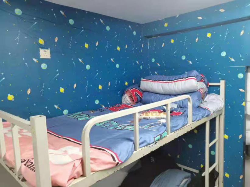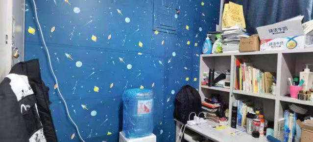 宿舍简介:广袤无垠的星河泛着淡淡蓝光,另无数人神往。在墙壁上贴上星空主题的壁纸,让人怀有无限的想象,也能在安静闲暇之时,抬头仰望,找到自己的一片天地。