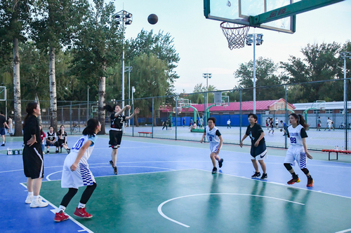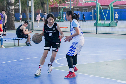 毕业篮球赛女篮比赛于5号场展开,对阵双方为15级女篮联队与我院女篮院队。比赛开始,场上气氛不失欢愉,双方队员在比赛中迸发着青春的活力,力争表现出自己的最佳状态。开球后44秒,15级女篮联队付子艺一记抛投精准命中,为15级女篮联队首开纪录。随后,15级女篮联队一直领先。面对不利的局面,院队试图缩小比分差距,12分03秒,院队蔡思琪突破对方外线防守后果断投篮,皮球应声入网,院队拿下2分。上半场结束,15级女篮联队以10:3的比分领先院队。