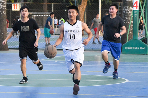 在6号场进行的毕业篮球赛男篮比赛由15级联队对阵我院男篮院队。开局50秒,院队蔡佳辰补篮成功,为院队先拔头筹。在之后的比赛过程中,裁判员秉公执法,严肃认真,尽自己最大的努力保证比赛的公平。为了让即将毕业的15级同学打上一场酣畅淋漓的比赛,两队队员积极投入,全力以赴,展现了高超的球技,比赛十分精彩,分差保持在5分以内。