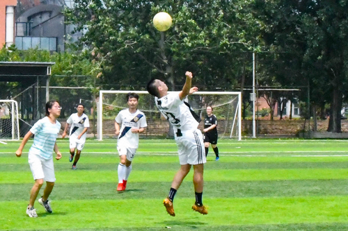 上半场开始,气氛轻松愉悦,场面大开大合,双方先后进球得分。随后,双方陷入了短暂的胶着。之后15级联队踢出状态,逐渐拉开比分。第14分钟,15级联队李秦陇找准时机,门前抽射得分。15级联队孙泽远又在上半场即将结束时大力攻门得手,为15级联队扩大领先优势。上半场比赛结束,15级联队以5:2领先院队。