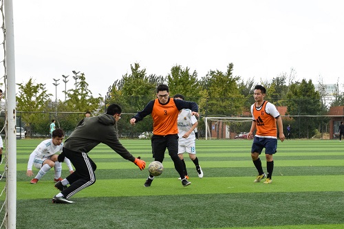 易边再战,17级1班大举压上,力求扳平比分。第36分钟,硕博联队金玩守左脚迎球抽射直挂死角上演“帽子戏法”,3:0,场上比分再度拉开!17级1班虽三球落后,但不甘示弱,依旧进行积极拼抢,誓要扳回一球。硕博联队一连数次极具威胁的近距离抽射均被后卫及门将奋力化解,没能转化成进球。第51分钟,17级1班禁区内手球被判罚点球,硕博联队蒋中业冷静应对,骗过守门员将比分拉大至4:0!第57分钟,硕博队李祥宁斜45°传中准确找到金玩守,后者扣过防守队员推远角得手上演“大四喜”,同时将比分定格在5:0!全场比赛结束,最终,硕博联队以5:0战胜17级1班,取得小组赛开门红。