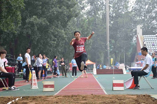 在女子跳远的比赛中,我院运动员伍伽乐跳出了3.47米的好成绩,位列第七。