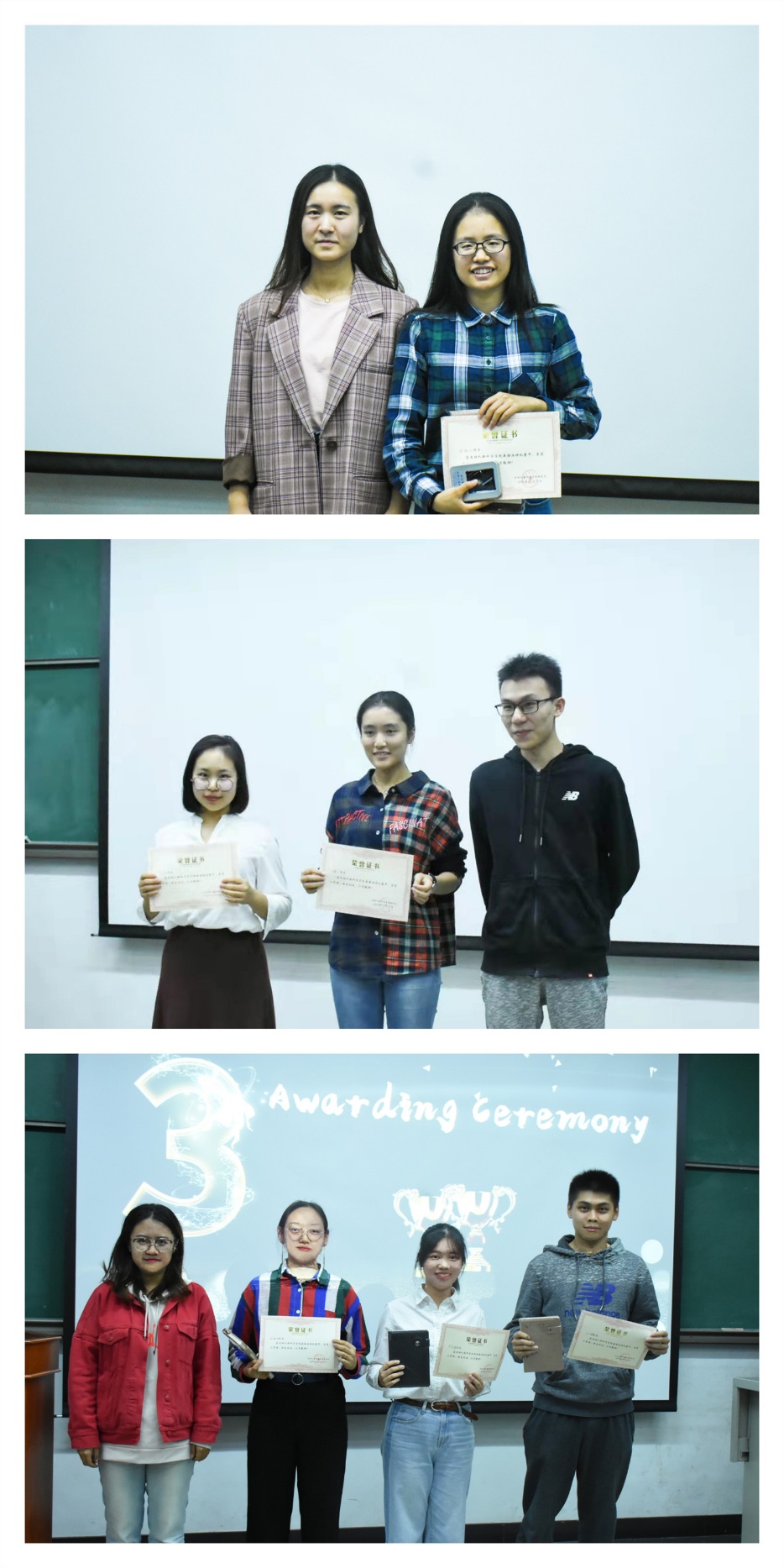 评委们对参赛选手的精彩表现表示了肯定,同时,也对参赛选手演讲的表达方式提出了宝贵建议,最后评委们亲自为获奖选手颁发了奖状和奖品。我院第六届英语演讲比赛圆满结束。