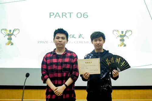比赛结束后,评委对场上辩手的表现作出了细致深刻的点评,并公布比赛结果。正方“多喝热水少熬夜”队略胜一筹,夺得桂冠。反方二辩倪鸿瑞被评为最佳辩手。随后,颁奖嘉宾为获胜队及最佳辩手颁发奖状和奖品,本次辩论赛圆满落幕。