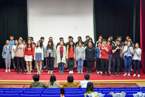 本次合唱大赛的指定曲目是《我和我的祖国》和《明天会更好》。主持人宣布比赛开始后,首先出场的是17级1班,他们把手语和朗诵融入到表演中,凭借创意十足的改编赢得了全场的掌声。紧接着上场的17级2班也表现不俗,他们用精心编排的队形和饱含深情的歌声打动了现场评委和观众的心。随后,16级1班,18级3、4班,18级1、2班及16级2班依次登场,他们自信活泼,热情洋溢,每个班均有自己的亮点和特色,他们用自己的歌声,唱出了对祖国的依恋和对未来的希冀。比赛结束后,主持人宣布比赛结果,17级1班和17级2班分别以30.5分和26.25分的成绩夺得优胜奖。同时,17级1班的指挥和领唱也凭借着出色的表现被评为优秀指挥及优秀领唱。
