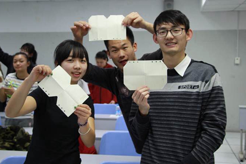 教育学院邀请了拓展社社长组织大家开展室内游戏。“隔数拍手”、“闭眼撕纸条”等简单热身后,两个院系相同部门的部长坐在一起结成一组,开始了“你画我猜”的小游戏。游戏过程中各组或配合默契,或心急语塞,各种意想不到的描述和回答惹得大家哄堂大笑。一轮过后,猜出词数最少的三个组受到惩罚,他们按照自己的风格,将“洗衣舞”改编成不同形式,接连表演,气氛一度被推向高潮。系列游戏结束后,大家留下彼此的联系方式并合影留念。
