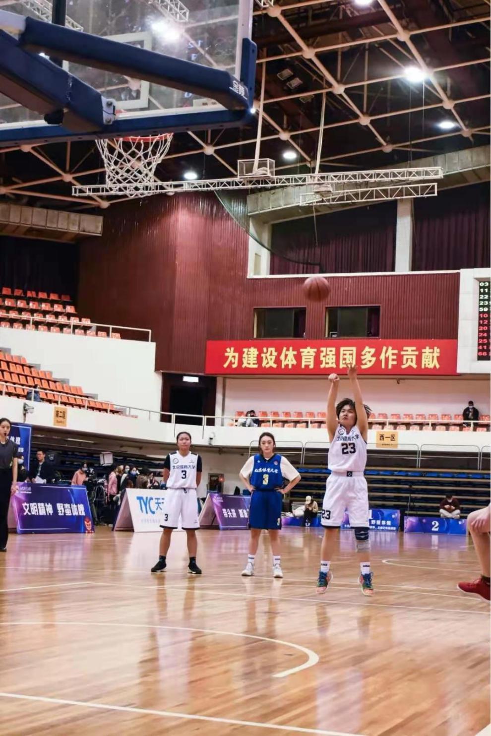 次节比赛开始,我方刘晓彦前场转身过人妙传59号项羽天,精准中投入网,首得两分。双方进行激烈拼抢,我院刘晓彦,戴曼婷,项雨天连续内外传导,形成篮下空位机会,最终由刘晓彦终结得手。随后我方外线良好防守被对方频频抢断形成快攻机会,我方一边加强防守,一边进攻火力不减。刘殷玉典于前场左突右投,命中得分,随后项雨天篮下点起对面,打板得分。双方你来我往,交互失误。次节战罢,上半场以18:23结束。