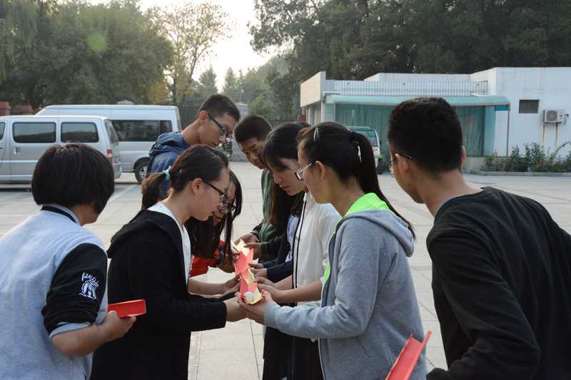 学生会主席刘金一进行简短讲话之后,活动正式开始。主持人首先组织大家围成圆圈进行准备活动,活跃现场气氛,多个游戏过后,成员之间的陌生感明显消除。随后根据大家的站位情况,全体成员分为九组,分组设计队旗、队名、口号以及队形,每个小组能充分发挥想象,为自己的队伍设计出有趣而且不失创新性的口号。最后,主持人安排了三个紧张刺激的游戏,这些游戏既考验了每个队伍队员之间相互协作的能力,又体现了成员间团结向上的精神。最终,第八组获得了游戏的最终胜利。