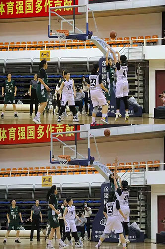 下半场易边再战,我院7号包涵内线造成犯规两罚全中,3号范恩晴连续突入内线得手,18号董凯亚接连命中两记三分球,我院顺势将比分拉大,此后双方互不相让。三节战罢,我院44:42领先对手。