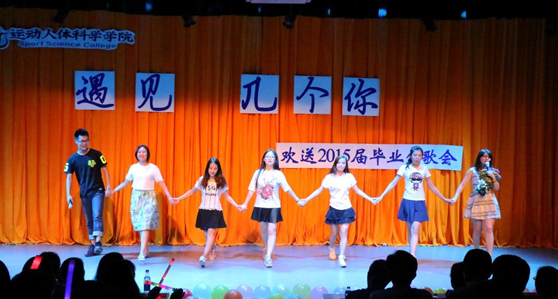 幽默的暖场视频和温馨的歌舞《爱你》开场就点燃全场观众的热情。随后王瑞元院长讲话,他阐释了自己对歌会主题的解读,祝福毕业生奔向美好的未来,并给毕业生颁发纪念书签。接下来,毕业歌会正式开始。219寝室全体女生和三位男生带来的舞蹈《青春失恋联盟》表现出无限青春活力;余唯乐带来歌曲《海阔天空》,唱出了青年人对未来的壮志满怀;古风歌曲《一眼万年》的演唱者王墨玉用缠绵的歌声,表达了与大家相知相识四年的深厚感情;由杨子鹏、万鑫带来的歌曲《老男孩》重温青春过往;由心理班男生带来的搞笑舞蹈——《群魔乱舞》,将全场气氛推至最高潮;罗文、梁智两位男生带来的歌曲《贝加尔湖畔》,在圆润、饱满的吉他伴奏下,歌声飘逸而空灵;杨文斌、崔恩泽深情演唱的《See you again》对即将天各一方的朋友们诉说着不舍;研究生李萌带来的肚皮舞《Tabo Solo》光色流溢,舞姿翩跹,成为全场最闪耀的焦点;学院男篮队员带来歌曲串烧,男神登场,引爆全场火热激情;许鸿皓的一首《咸鱼》,浅唱低吟着青春的梦想;最后,由11级人体2班带来的合唱《光阴的故事》纪念永不磨灭的青春。