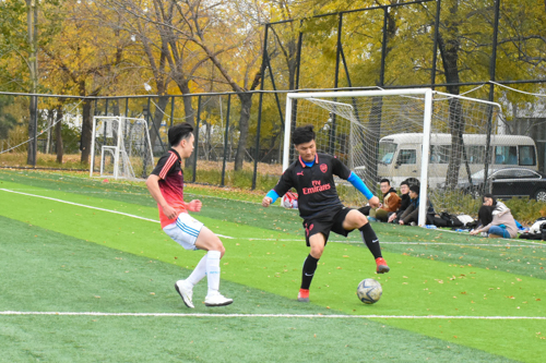 11月6日12时,我院足球联赛半决赛在足球外场4号场拉开帷幕,本场比赛由17级2班对阵15级联队。