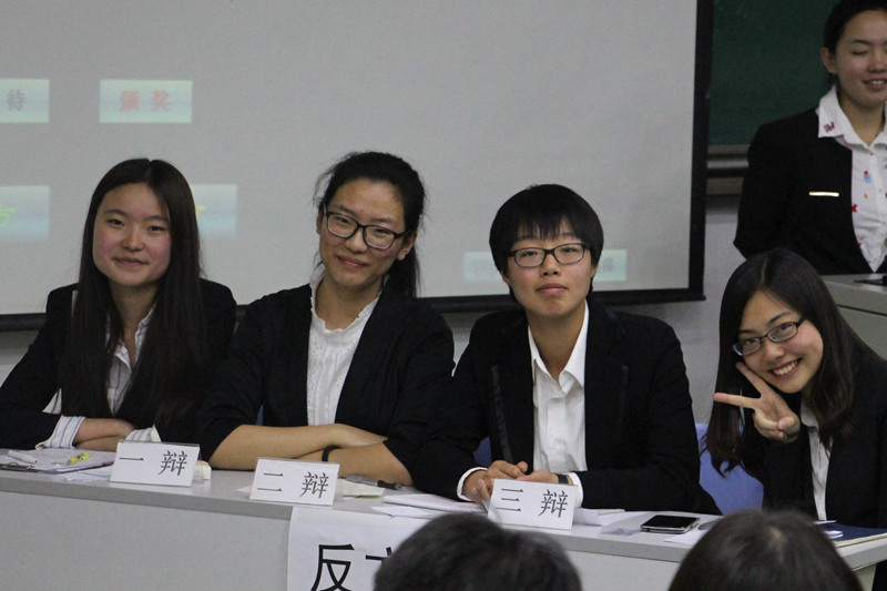一辩:任思悦 二辩:赵艺 三辩:杨玉莹 四辩:游冠东