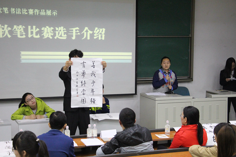 4月19日晚7点整,我院在教学楼214教室举办了2016年书法大赛。本次活动由我院团总支、学生会主办,学习部承办。教务处副处长章朝晖老师、书法教师衣雪峰、我院团总支书记赵岩老师受邀出席。