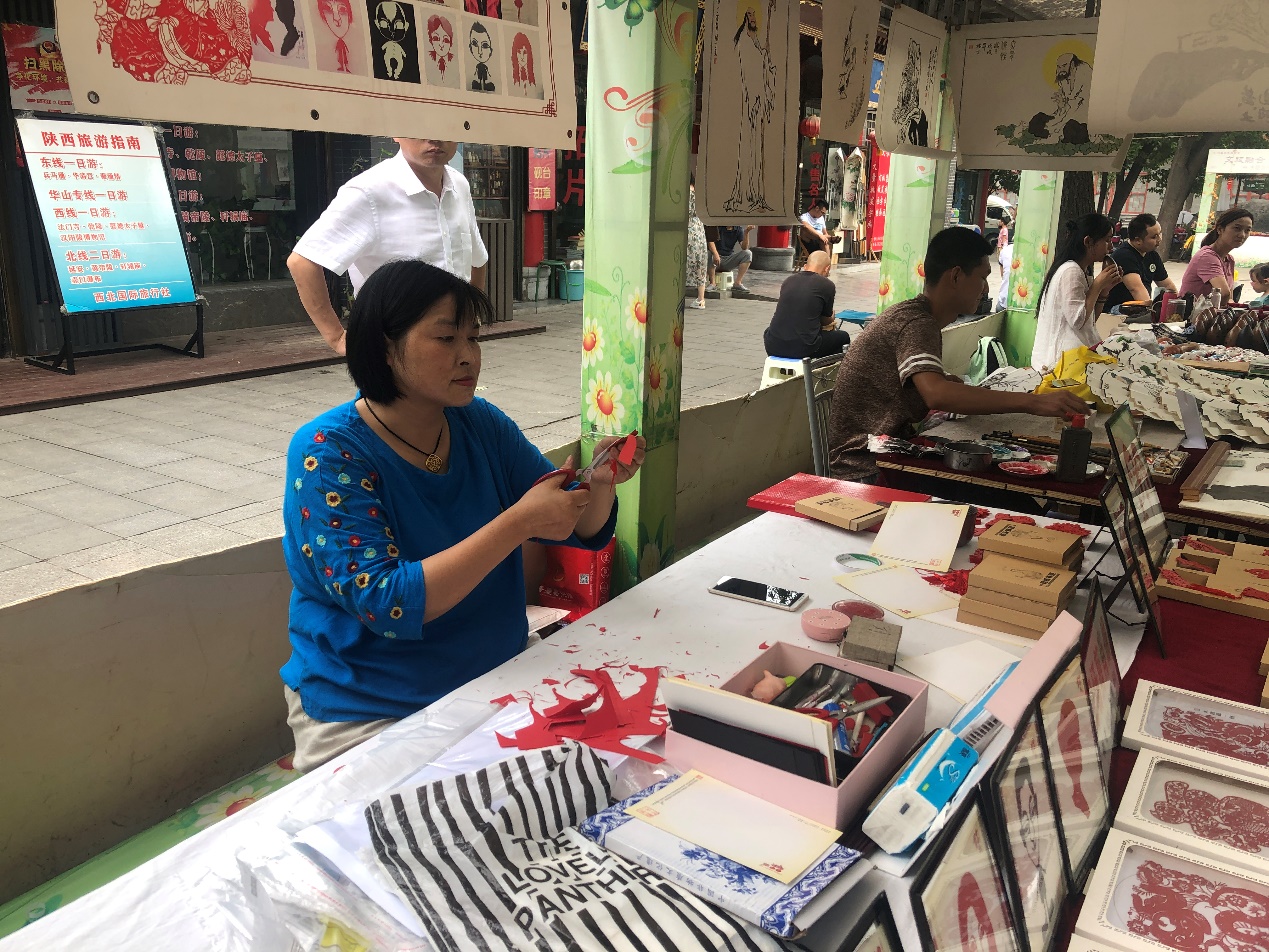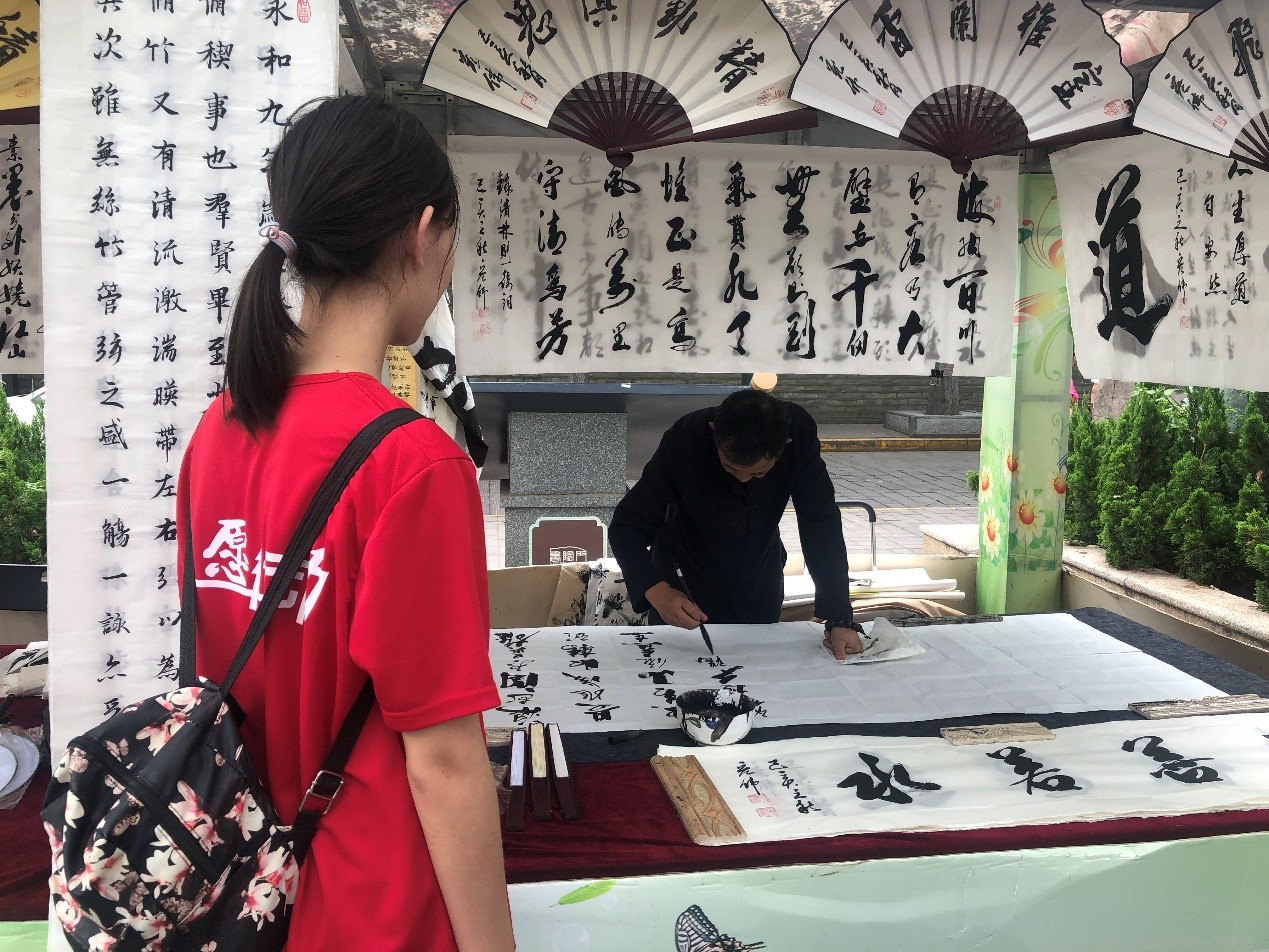 在去往围绕西安古城墙一周的环城公园途中,在西安碑林博物馆看到了许多非物质文化遗产的手工艺人现场表演。如剪纸、书法等等……同学们不由得驻足观赏,西安这座城市的文化底蕴正深刻地影响着每一个人。