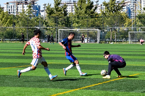 比赛开始,双方互不相让,战况激烈。第3分钟,16级1班获得前场左路定位球,10号单育森打门,球高出横梁。第4分钟,16级2班获得角球,10号喀迪尔头球偏出。第11分钟,16级2班发动进攻,23号陈春晖禁区弧顶打门,球被门将奋力封出。第23分钟,16级1班10号单育森左路突破射门,被对方后卫封堵出底线。上半场战况胶着,双方多次攻防转换后均未能打破僵局,比分0:0。