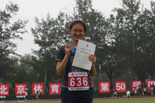 我院付子艺同学参加了三级跳的比赛。她表现出色,以9.45米的成绩拿下了第二名。