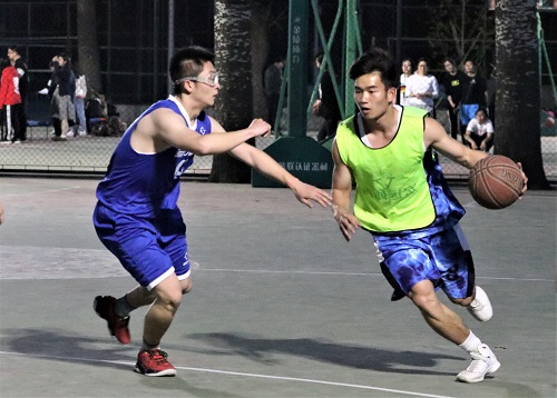 4月10日晚19:00,学院篮球联赛在篮球外场继续举行,今天有两场比赛,分别在5号和7号场进行。