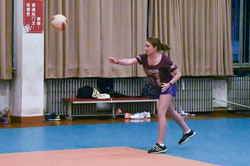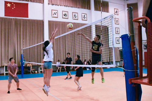 比赛中,双方队员个个精神饱满。刚开场,我院发球,二传轻吊多次得分,但明尼苏达大学的队员们凭借着良好的协调能力和发达的运动细胞渐入佳境,时而拦网成功,时而巧妙传球,场下响起了阵阵掌声。两队之间团结协作,默契配合,相互鼓励,勇于拼搏,多次出现鱼跃救球,强力扣杀等场面,和谐欢乐而又精彩纷呈。三局比赛结束后,大家意犹未尽,由我院学生提议与明尼苏达大学队员分别出三人交叉组队,组成两支新队伍,获得明尼苏达大学队员的一致赞同。随后,双方继续进行比赛,大家深入沟通,互相学习,兴致盎然,直至闭馆才结束了此次排球交流赛。