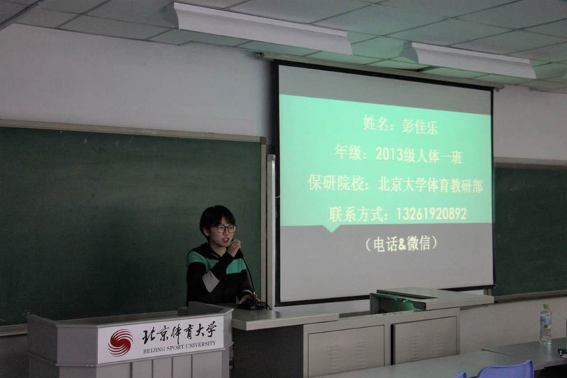 首先上台的是曾赴美国明尼苏达大学交流学习的黄展煜,他初步介绍了明尼苏达大学运动人体科学专业,以及出国交流学习的收获与利弊,并向到场同学介绍了出国留学所需准备的事项。随后上场的保研至北京大学的彭佳乐就学生干部与学习生活之间的平衡给出了自己的理解,保研至清华大学的陈天麒介绍了自己的学习方法,同样保研至北京大学的刘玉洁着重讲述了大学生创新项目的重要性以及申报准备工作。提问环节中,同学们就目前学习中存在的问题积极提问,各位主讲人分别做出了精彩的回答。最后冯俊鹏作为嘉宾做出讲话并向同学们表达了自己的期许。
