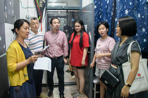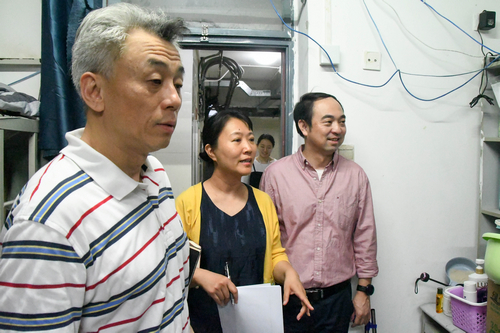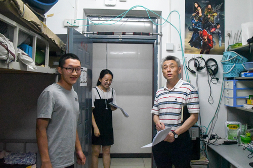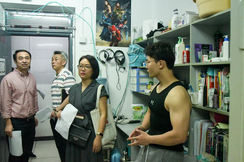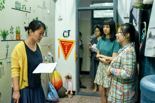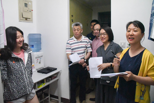 评委老师们首先来到了14号楼。在看完第一个寝室后,评委老师们为了保证本次比赛的公平公正,同时最大程度的保证评分标准的一致,相互讨论了具体的评分细则。在14号楼评分完毕后,老师们随后来到了13号楼男生宿舍以及5号楼女生宿舍进行了评分。