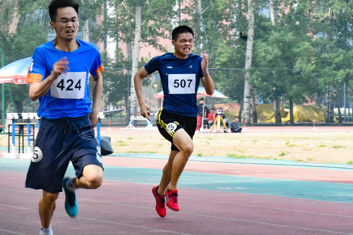 男子阳光组400米预赛中,我院508号运动员马炎以56.03秒的优异成绩获得第1小组的第一名,第2小组的507号运动员郭明洋全程冲刺,以57.26秒的成绩获得小组第二,最终两人均进入决赛。