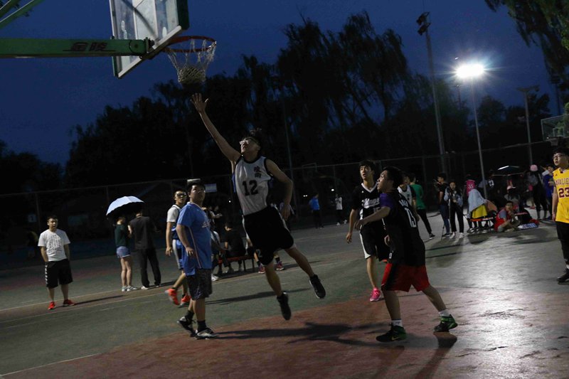 5月3日,篮球联赛淘汰赛在篮球外场如期展开。