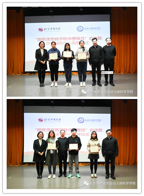 周启迪部长和王荣辉院长共同为学院学业辅导中心揭牌,并为朋辈辅导员颁发讲师证书。朋辈讲师分别各学科的第一名,他们分别是2016级洪吾悦(英语)、2016级于轶超(生物力学)、2016级汪澳哲(生物化学)、2017级卢芃(生理)、2017级刘娜(高数)和2017级刘媛(解剖)。