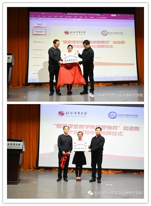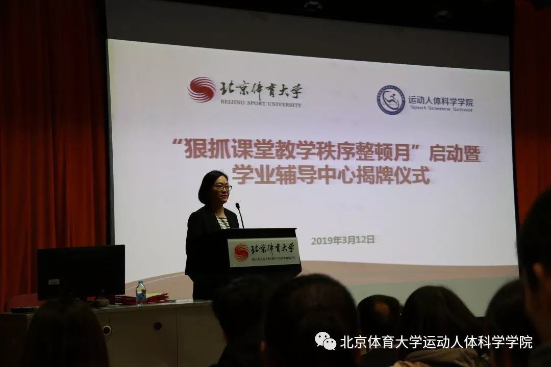 2019年3月12日中午12点,taptap点点足彩“狠抓课堂教学秩序整顿月”启动暨学业辅导中心揭牌仪式在卓越讲堂举行。出席本次活动的领导有学工部周启迪部长,鲁骥老师,taptap点点足彩院长王荣辉,分党委书记雷厉。taptap点点足彩全体在校的各年级本科生、硕士和博士研究生500余人参加会议。会议由院办负责人吴晓薇老师主持。