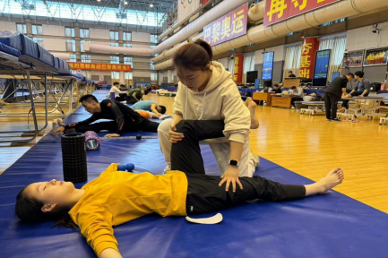 为助力备战2024年巴黎奥运会,寒假期间2023级硕士研究生白紫菲为国家蹦床队运动员提供康复保障。