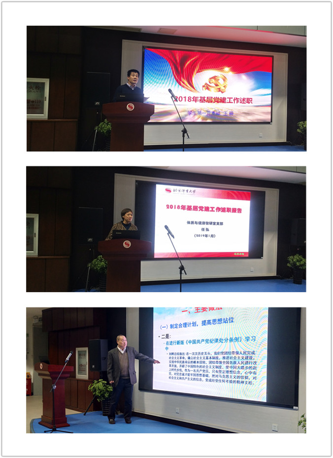 会上,9位党支部书记认真准备述职材料,制作了精美的PPT,分别从履职情况、主要做法、存在问题及下一步努力方向等方面进行述职;2位任期不足半年的党支部书记采取了书面述职形式。在述职中,书记们全面梳理和总结了过去一年支部党建工作开展情况。各支部能把学习贯彻落实十九大精神和习近平新时代中国特色社会主义思想,牢固树立“四个意识”,抓好“两学一做”学习教育常态化制度化作为履行党建主体责任的重要方面,按照全面从严治党要求,聚焦提高基层党建工作质量,突出政治功能,做好党建工作。尤其是能围绕学校改革发展,对接“双一流”建设和“三转型”改革任务,把上级精神与做好学院改革发展以及科研成果提升、国际化推进、人才培养等重点任务紧密结合,积极发挥党组织战斗堡垒作用和党员先锋模范作用。