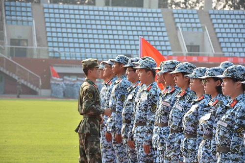 9月15日早6点,2017级新生身着军装朝气蓬勃地走向田径场,参加军训开幕式。
