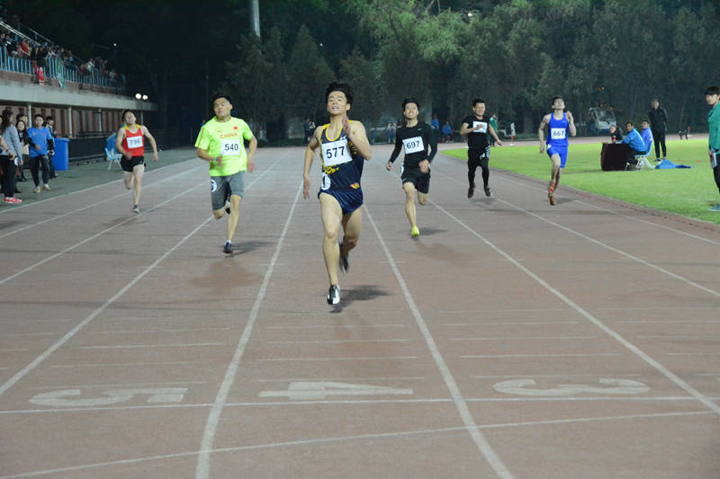 4月21日上午9点20分,在男子200米预赛中,成功晋级决赛。在下午的决赛当中,他以24秒68的成绩名列丙组第七名。在当天下午男子4*400米的决赛中,他肩负最后一棒。他严阵以待、握棒后全速冲刺,连超两名选手,他们的团队最终以3分40秒91的成绩打破了校运会记录,荣获丙组第一名。