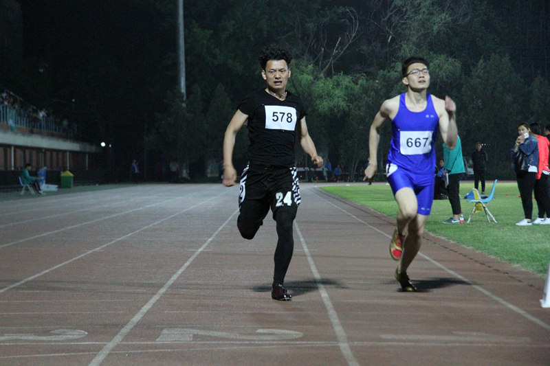 夜色与灯光为你们披上战袍,今晚400米的赛场,你们就是最闪耀的主角。另外,我院观众满场的声嘶力竭的欢呼与呐喊,成为暮色下一道靓丽的风景。