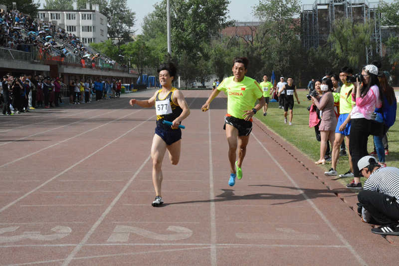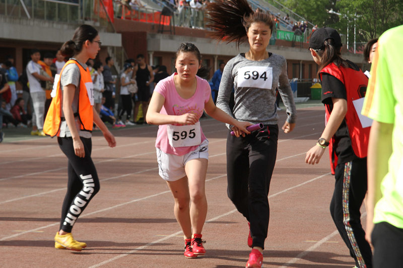 4月21日下午3点18分,最后一项男、女子组4*400米接力如期展开,我院选手再创辉煌。