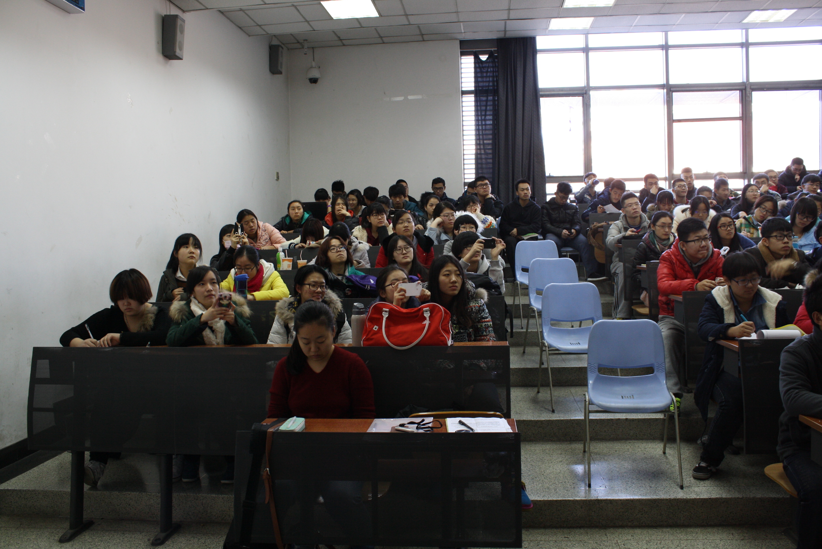 12月24日上午10:00,在教学楼214教室,学院2014级进行了本学期新生系列教育的最后一讲。辅导员王鹏老师、教务员刘芳华老师和2014级全体新生参加了此次大会。