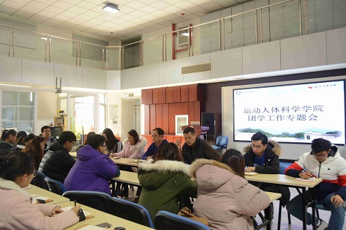 为了加强和改进党对群团组织的政治领导、思想领导、组织领导,进一步发挥群团组织作用。11月29日上午,运动人体科学学院分党委在教学实验楼322,组织召开了2017年团学工作专题会。分党委书记苍海、院长王荣辉、团总支书记王鹏,2017级研究生助管朱雨,以及学院团总支、学生会、研究生会的主要学生干部出席本次会议。