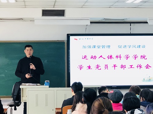 三、3月14日上午10:00,在教学楼311教室,学院召集所有研究生和本科生学生党员、入党积极分子和学生干部,开展"加强课堂管理 促进学风建设"的主题会议。分党委书记苍海,在会上通报了学风检查的情况,告知要进行学风建设月活动的安排,要求所有党员学生干部深刻认识优良学风建设的重要性和必要性,积极发挥模范带动作用,做优良学风的践行者和带头人,对班级的学风建设监督负责,对不当行为及时提醒纠正,营造良好的学习氛围。