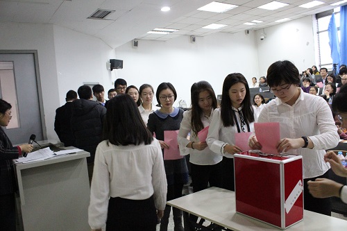 经学校党委批准,2017年12月20日上午10:00,中共taptap点点足彩党员大会在教学楼215教室召开,进行新一届分党委委员换届选举。108名正式党员参会,预备党员列席会议,此次大会由院长王荣辉同志主持。