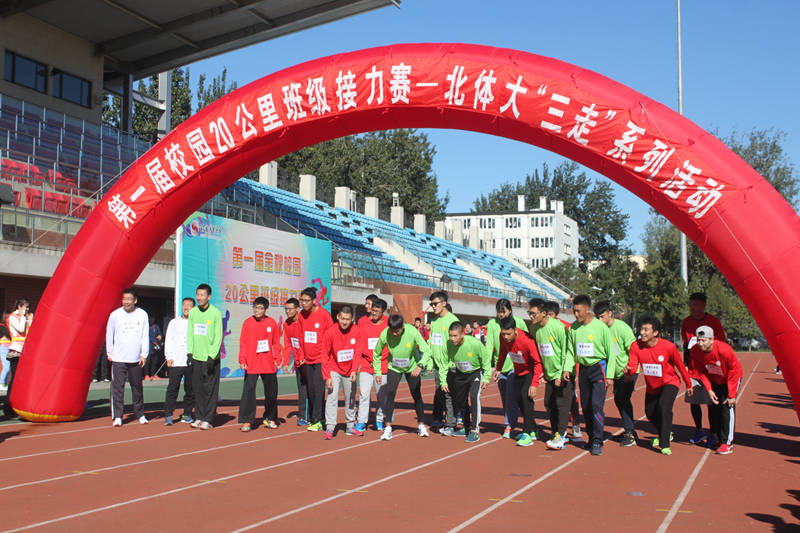 28日上午10点,北体大“三走”系列活动——首届金秋校园20公里班级接力赛在英东田径场顺利开幕,我院派出了两支男女各半的十人队伍参加比赛。