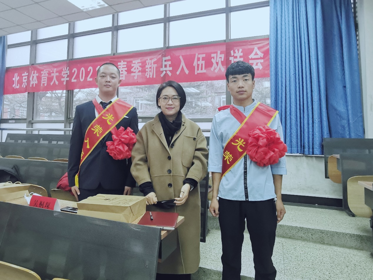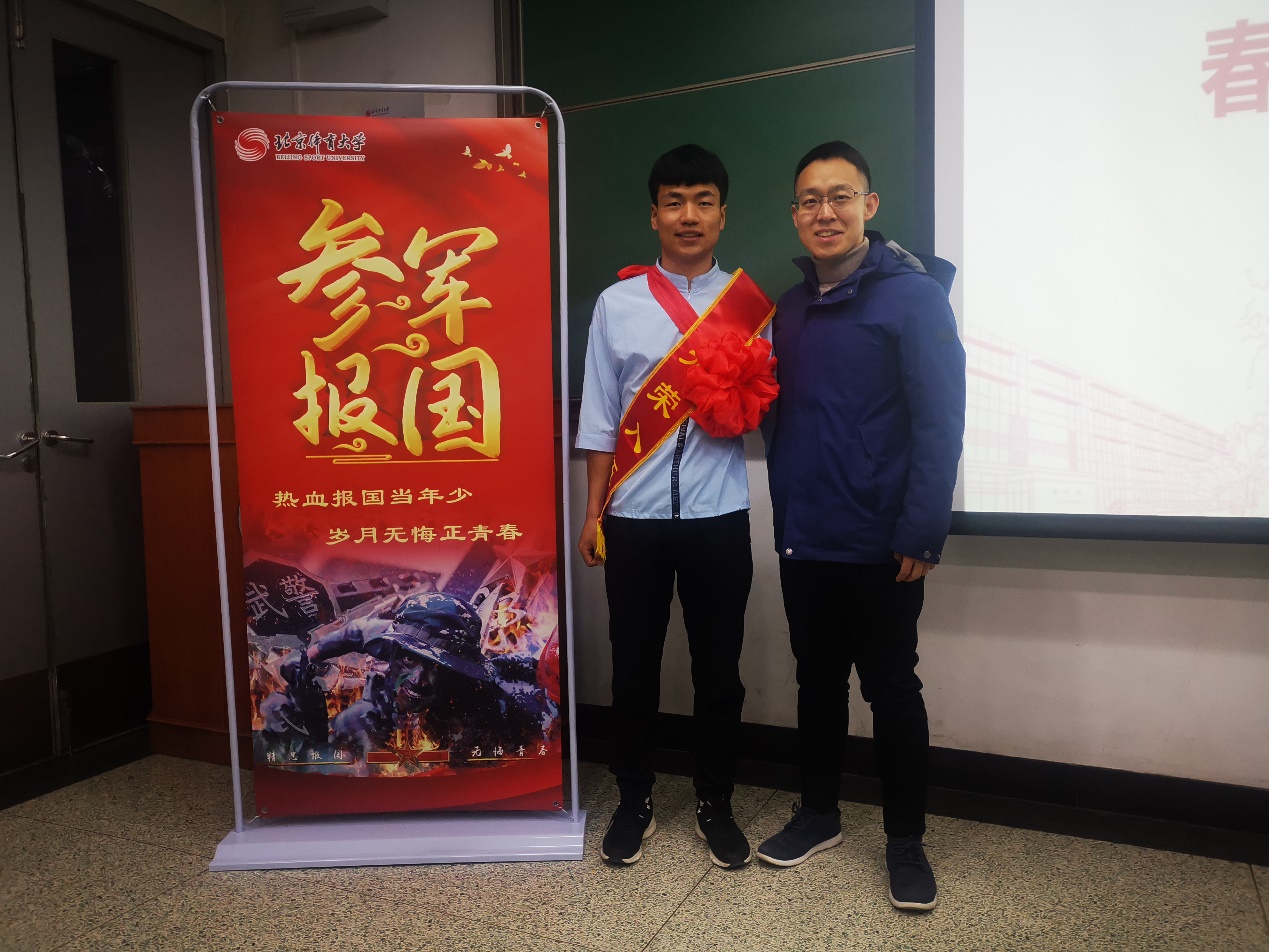 2021年3月5日下午,taptap竞彩足球2021年春季入伍新兵欢送大会在教学楼115教室举行,我院分党委书记雷厉老师、辅导员娄立天老师以及两位入伍新兵2018级本科赵紫龙、2020级本科祁学福一同参加欢送会。